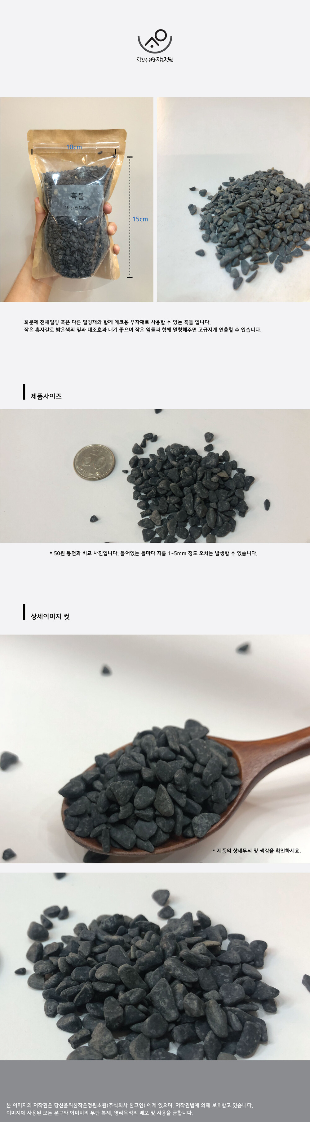 화분위를 멀칭할 수 있는 흑돌 입니다.